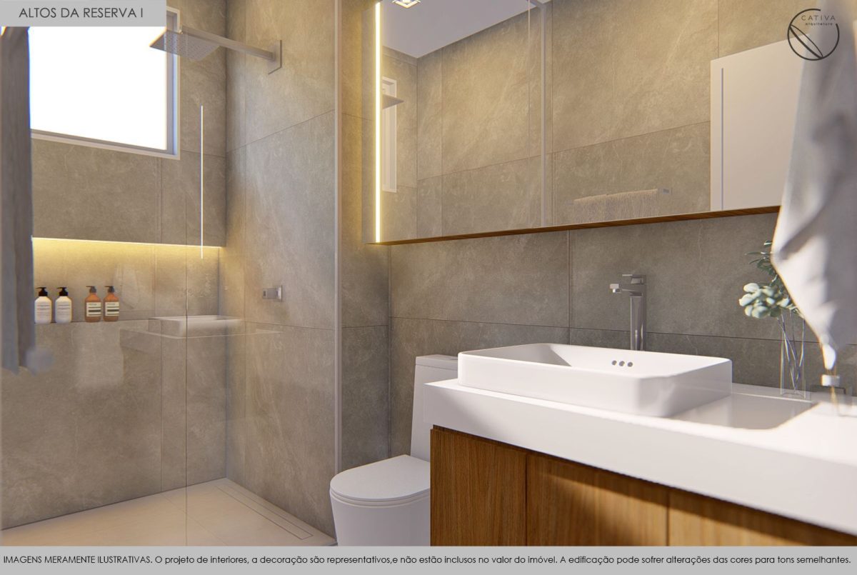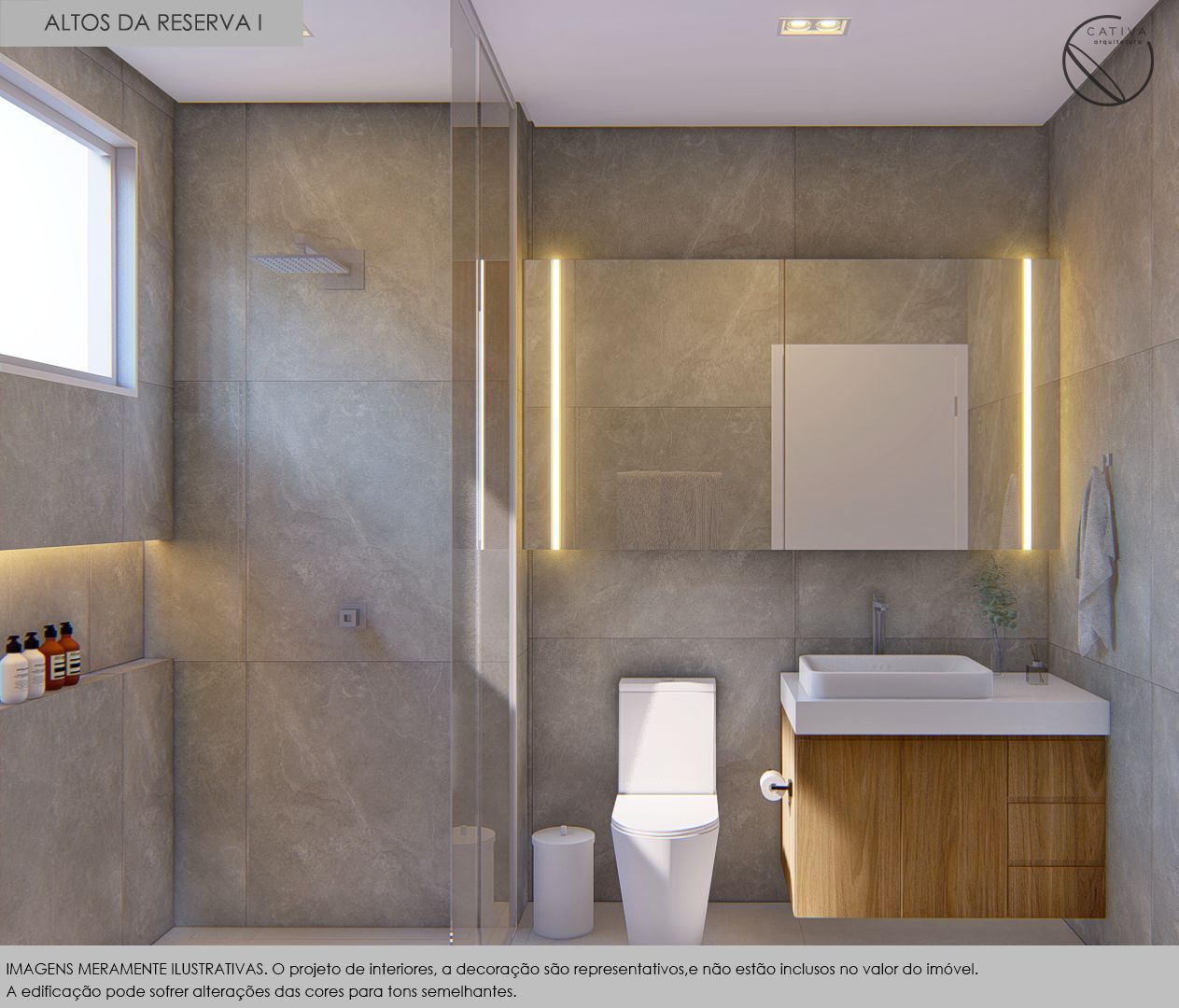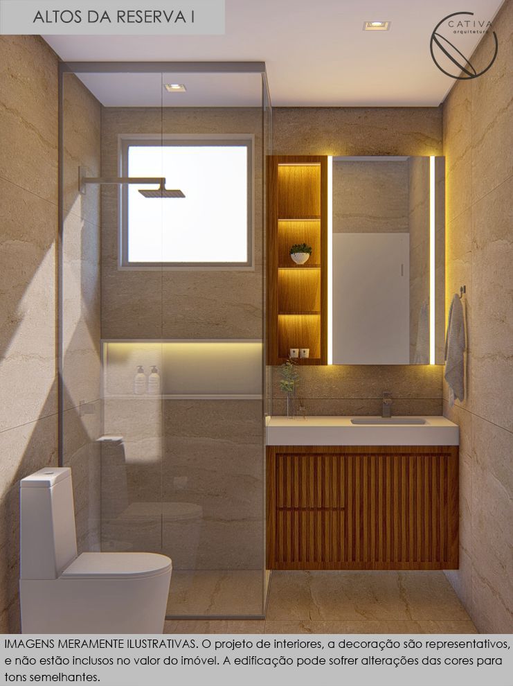 •⁠ ⁠⁠Demais banheiros: box, móveis fixos, torneira e pedra.